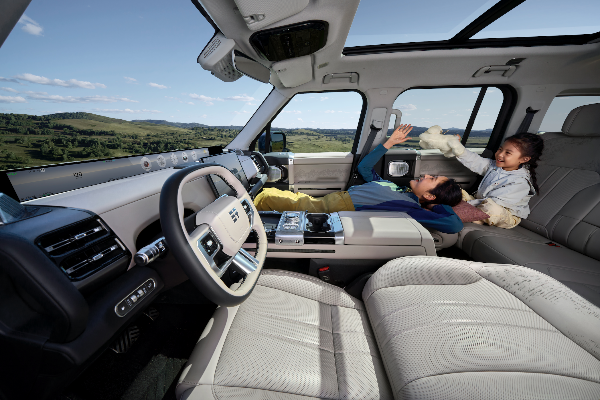 匠心品质,舒享奢华!真正的豪华越野,绝不止硬核性能,还有对舒适的决不妥协。G700搭载纵横云台越野底盘,前后双叉臂悬架+CDC+空气悬架+R-EPS转向的豪车级黄金组合,兼顾通勤舒适与越野从容。座舱配备云感智能座椅,精选北美优质牧场的Nappa真皮,包裹性和支撑性出色,旅途也能自在如家。劳斯莱斯同款莱斯康音响系统,拥有18个扬声器,16通道独立功放,百万级硬件配置配合大师调校,殿堂级声音艺术,陪伴用户的每一段征服之路。